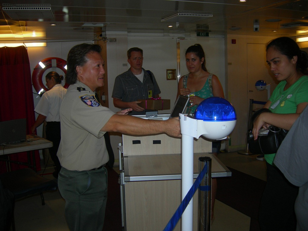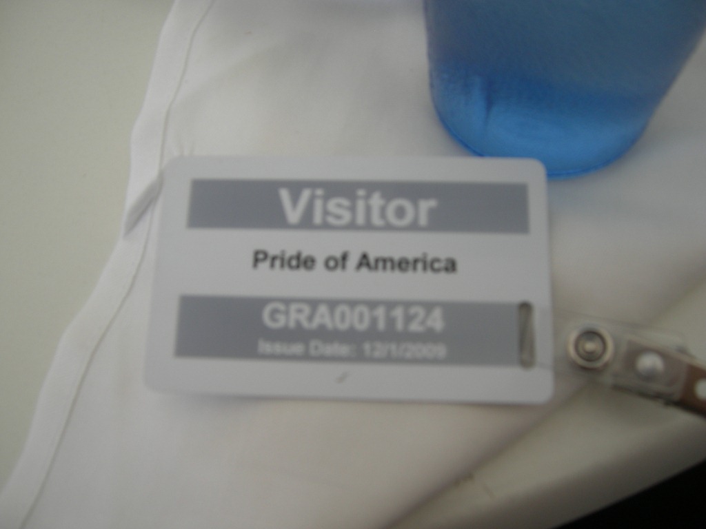 Once on board there is another place for us to stop. At this point we give up our driver’s licenses and get these nifty visitor passes for “inside access.”