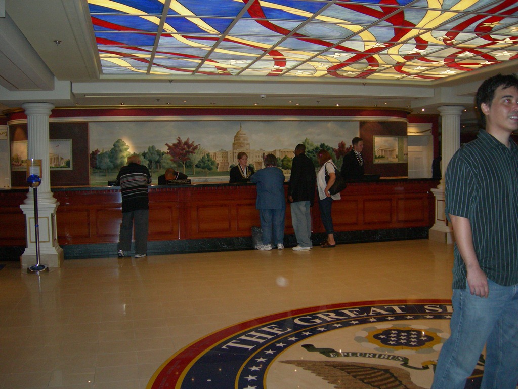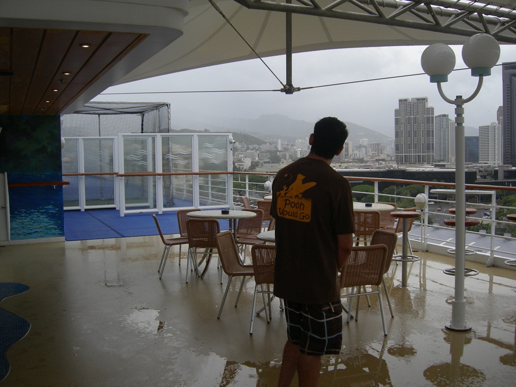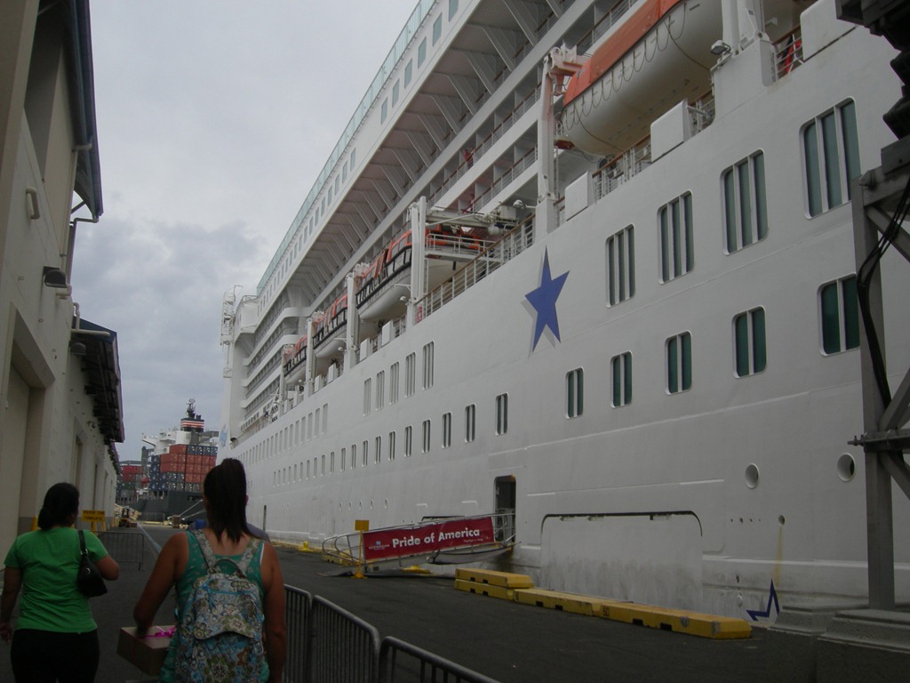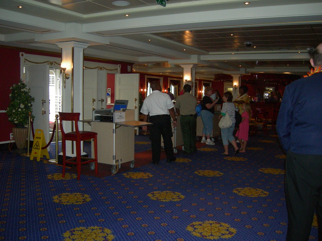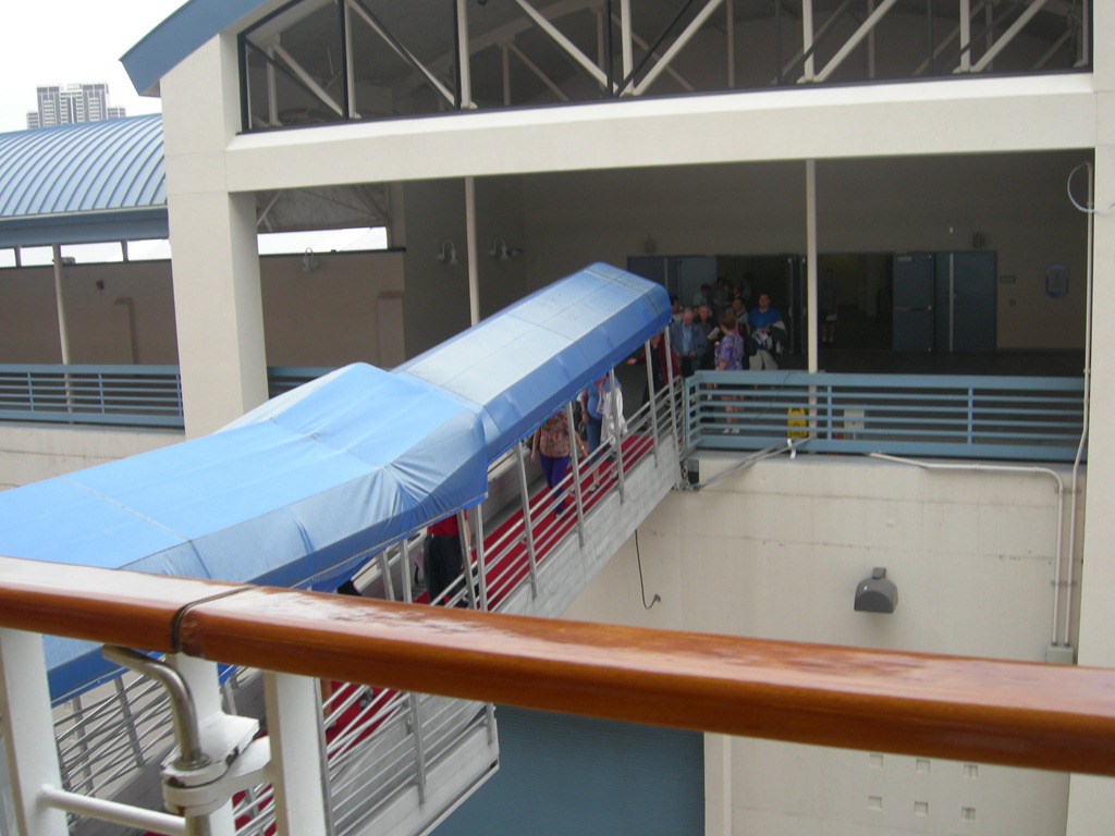 We did not enter through the same area that the rest of the guests had to because we came in as visitors of the crew and weren’t going to be boarding to stay the week. Here we are off to the side of the main check-in watching the tourists go through check-in.