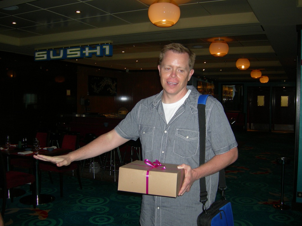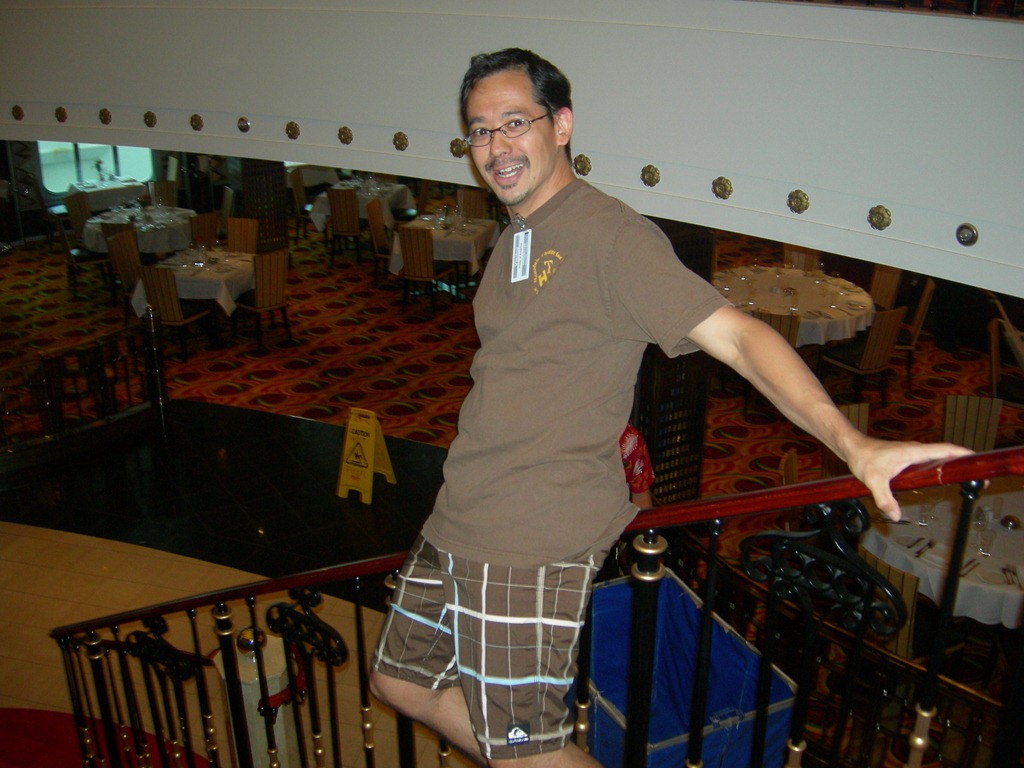 It looked like a very patriotic hotel. But one of my favorite places on the tour was the next stop we made, here is Jeff showing us where the Japanese food on the ship could be found.
