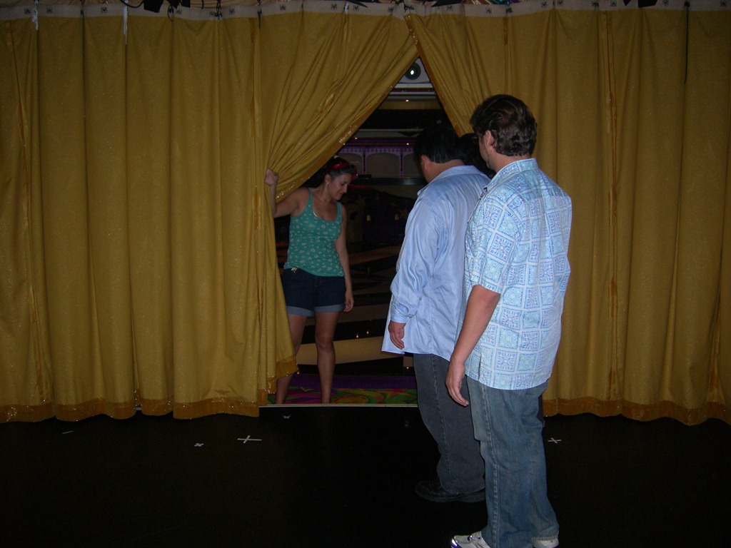 Although it was really dark, my flash did the trick and we were able to see behind the curtain. We entered through the side door and were able to exit right on to the dance floor.