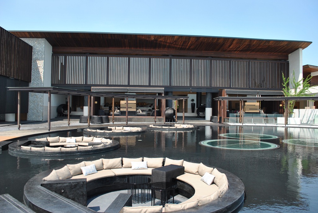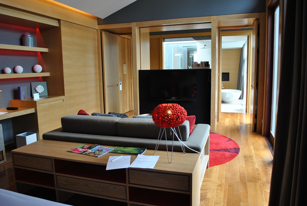 This is a picture of the backside of the lobby, I didn’t get it from the front because I found it to be way more impressive from the back. Each of the circles are sofa settings where you can lounge at get a drink from the bar that sits on the left (out of the picture frame).
