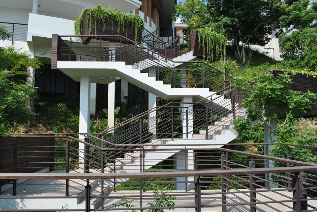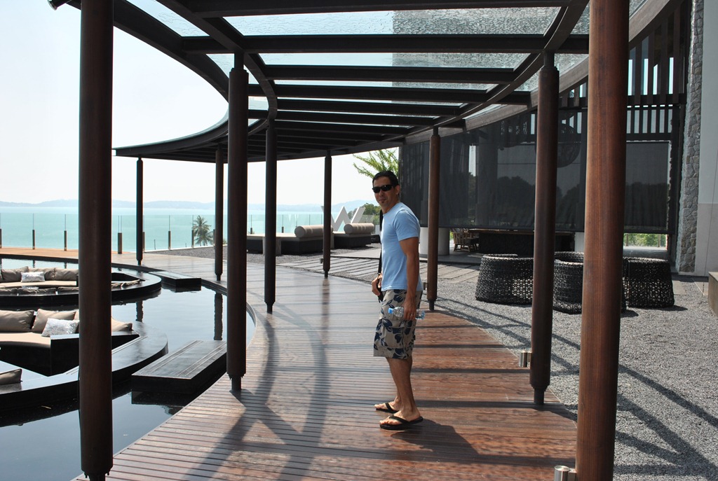 Here are a couple of pictures of the walkway that stops abruptly but overlooks the resort and the Gulf of Thailand. From the top it’s not as impressive looking down (so no pictures) because there are some areas that are still in construction but it’s worth looking out at from each of the little sofa sets. Although at the time of the day we were there, it was HOT! But only a little more than Hawaii summer hot.
