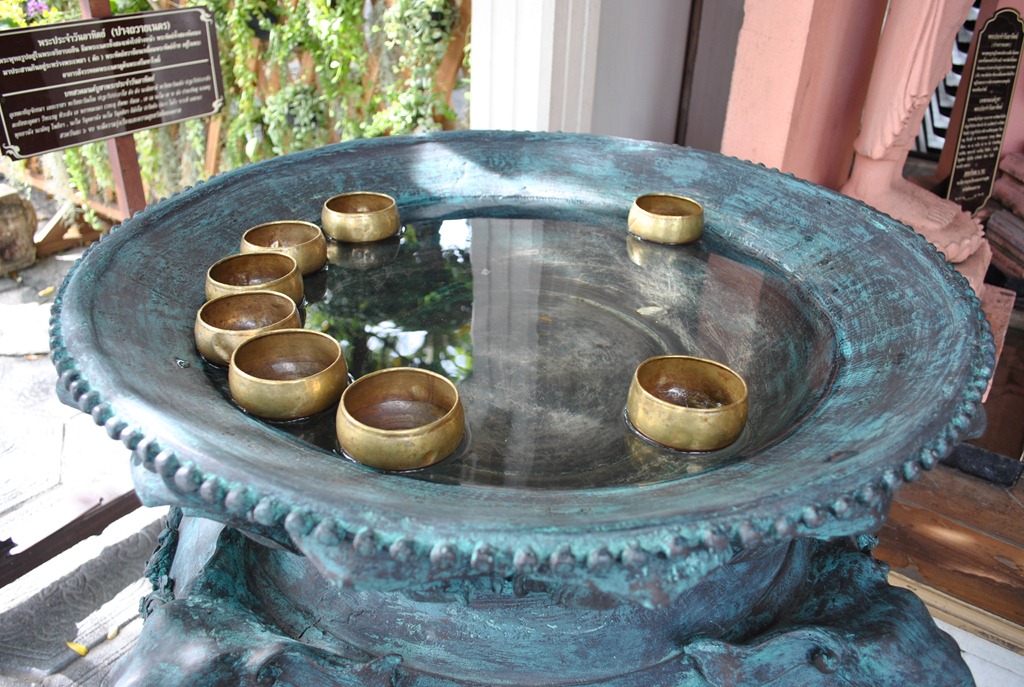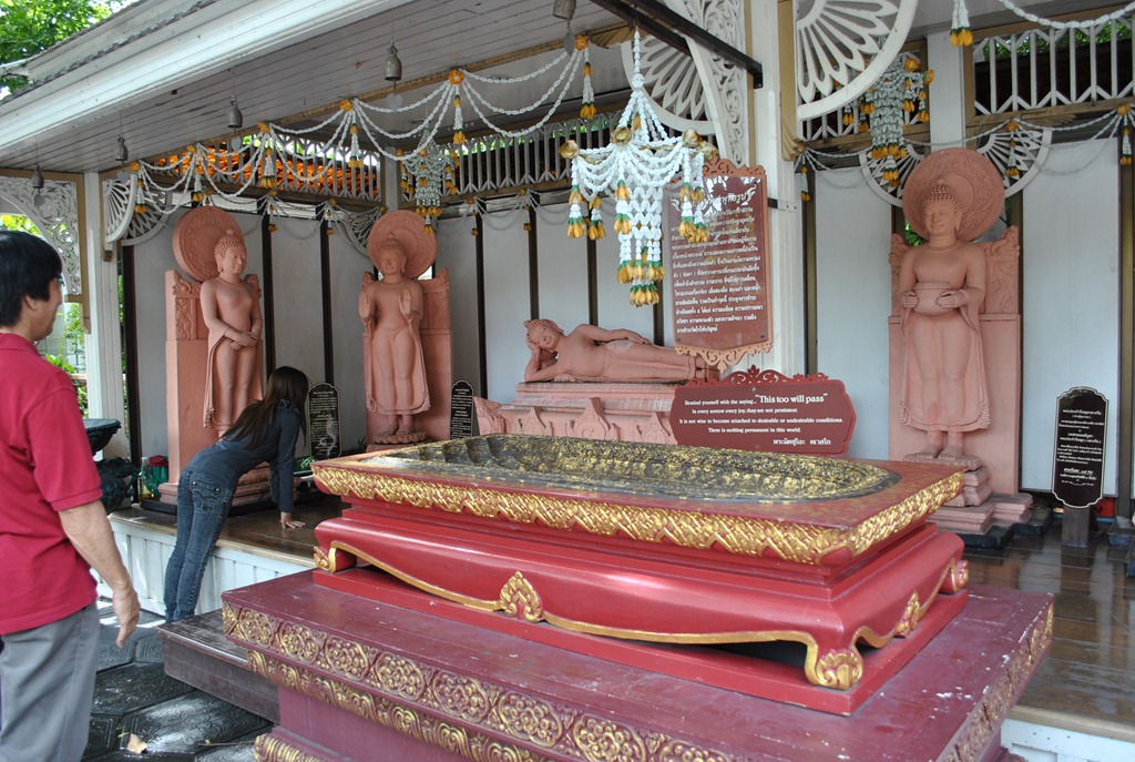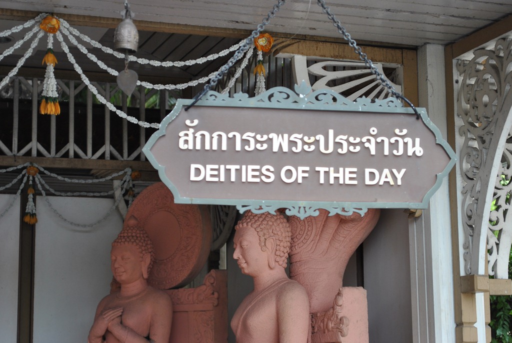 Outside the Erawan Museum you can also take part in the religious trappings. When we first went into the museum park, we stopped by the different deities. Each deity stands for a different day. Each person’s date of birth holds a special significance and that would be the deity that you would pray to and make offerings to. Squire and I used the little bowls with the blessed water (by the monks) and poured them into the cups in front of the deity of our day.