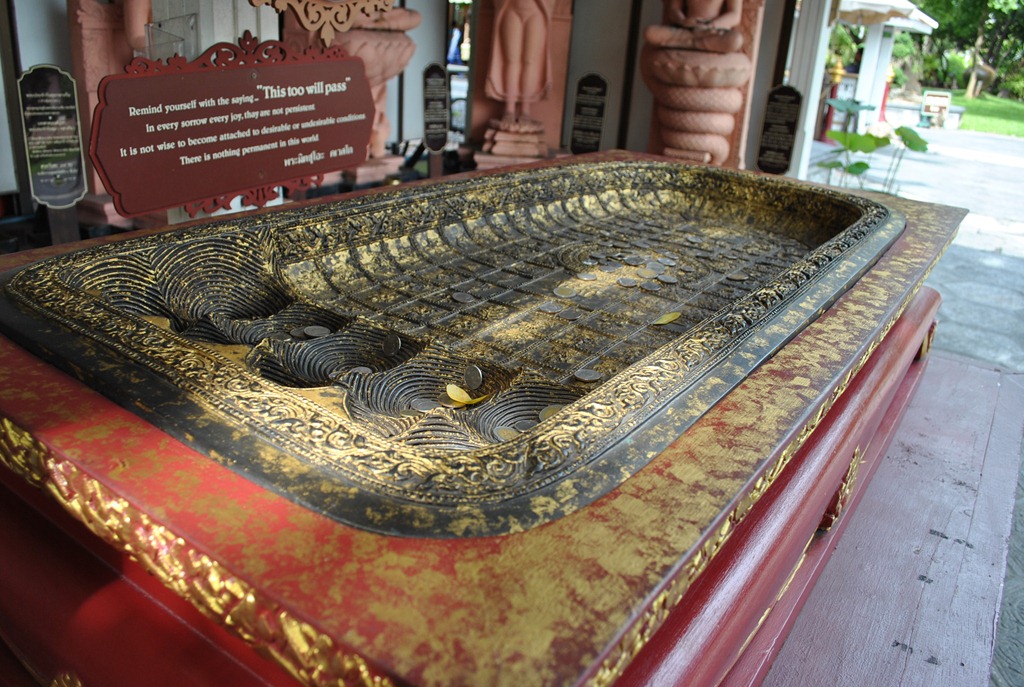 Here’s a picture of the Buddha’s footprint. It’s big.