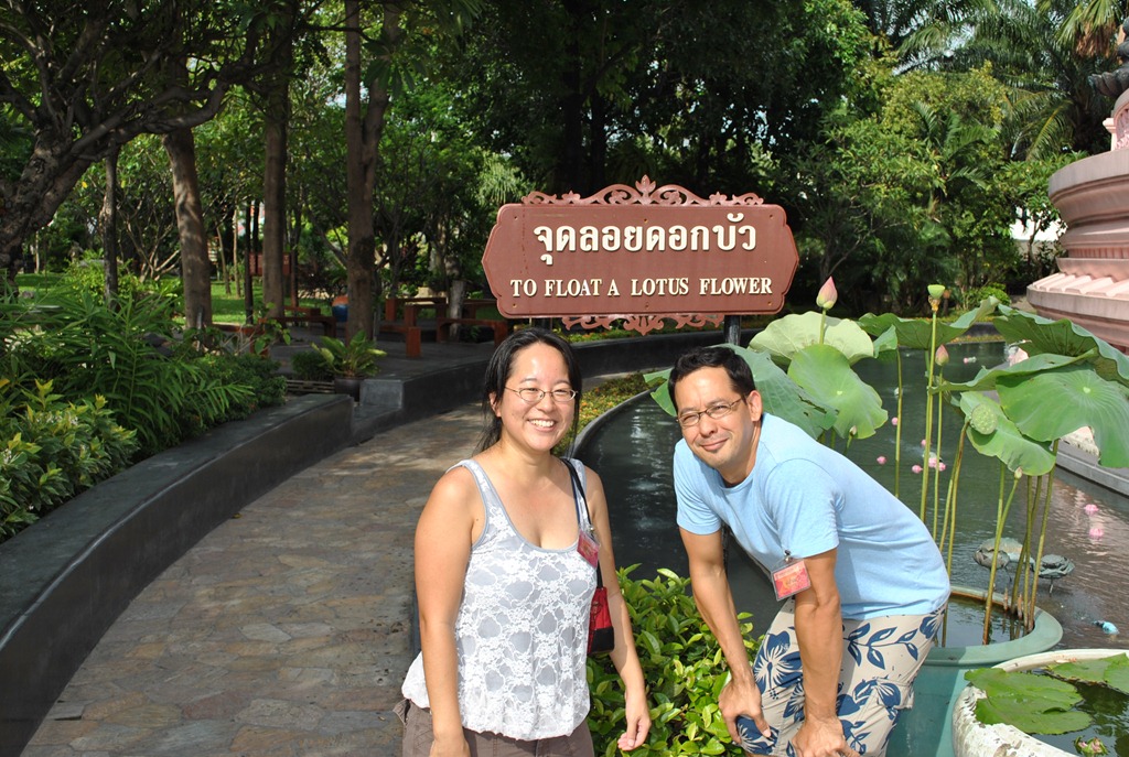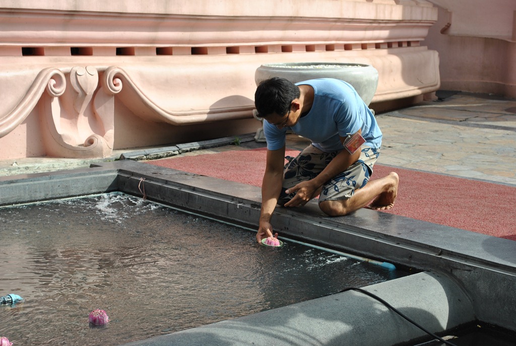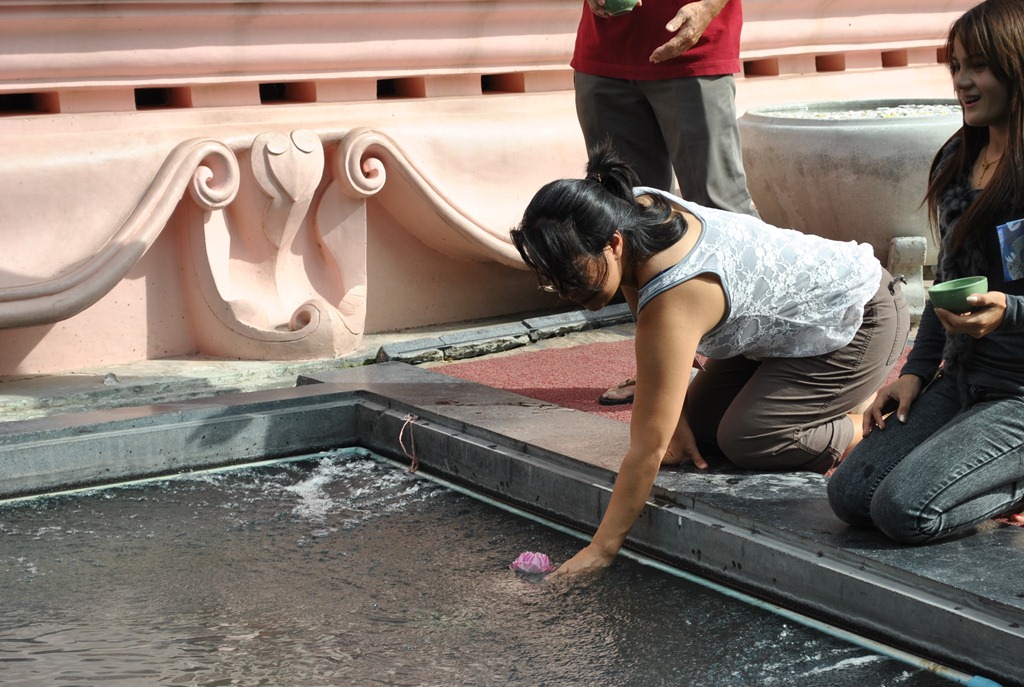 After the wai, we went to float lotus flowers. It was another wishing opportunity, so we made another wish and then floated the lotus into the water.