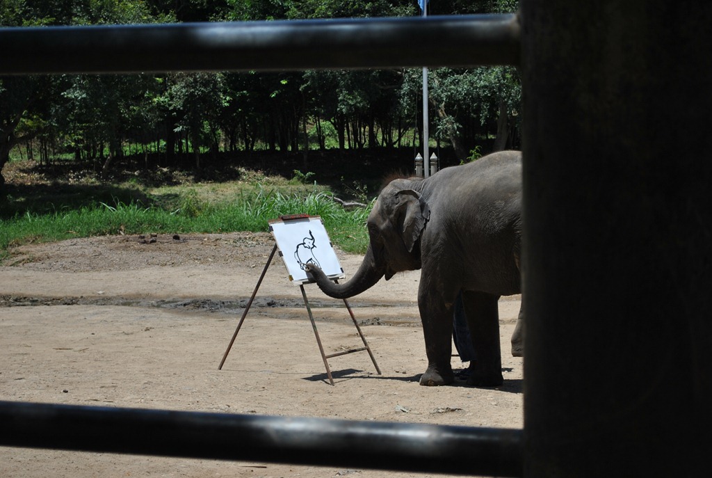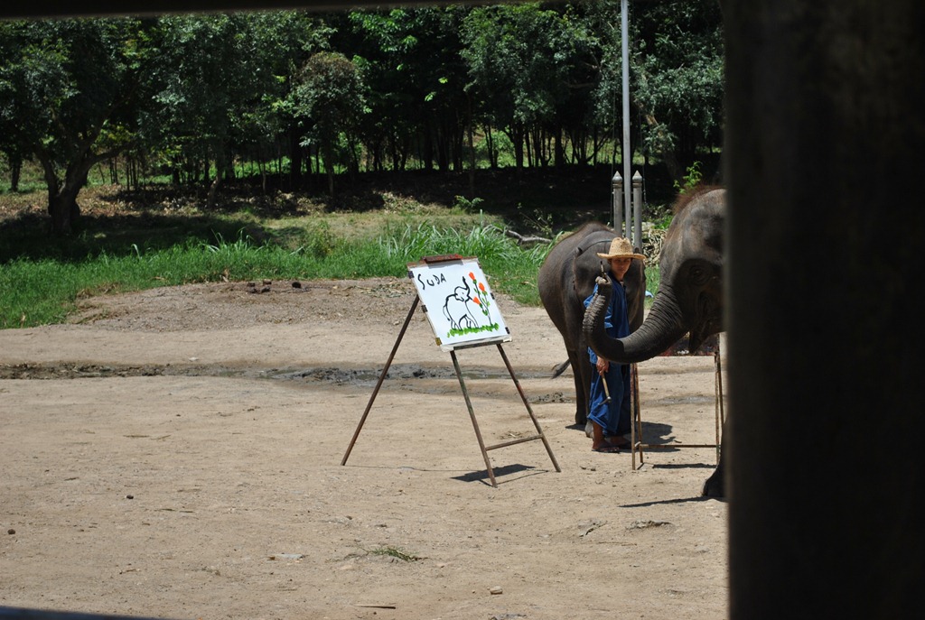 We also saw one of the elephants named Suda paint a picture of an elephant. Both Squire and I agreed that Suda was a much better artist than we were.