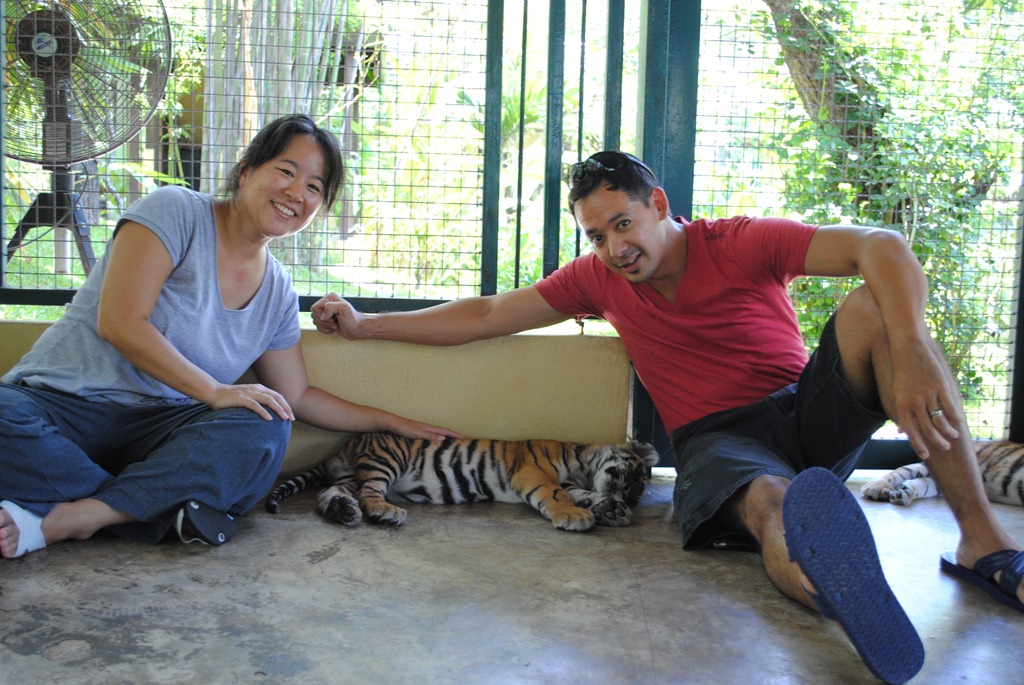We have a ton of pics that we’ll post to facebook soon. Also it looks as if once we get back to Bangkok and spend some time with my dad and his girlfriend, we’ll get to go to the Tiger Temple and pet more tigers. A definite plus because this is a highlight to our trip thus far that we wouldn’t mind doing again.