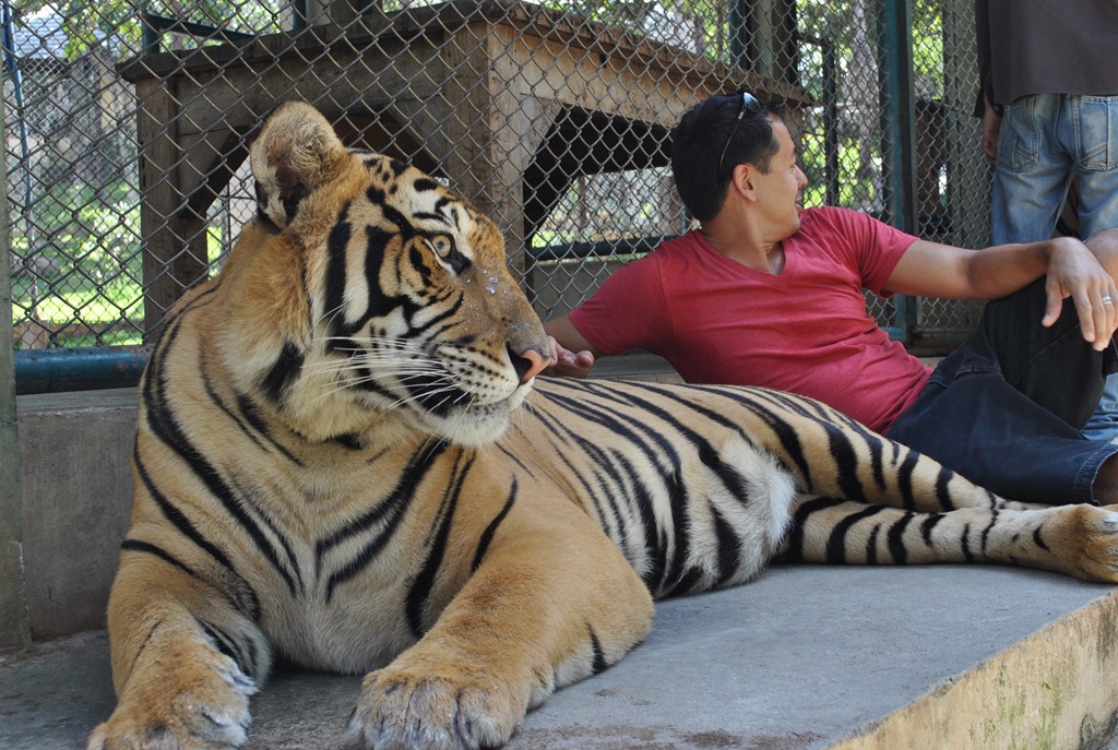 If you notice in the last picture of Squire petting the large tiger, his knee is blocking another tiger that came up behind him. I was taking the pictures at the time and although I could have gotten a pretty good picture of a Squire sandwich, I decided on playing it safe and at least warning him of the fact that there was a tiger behind him. If his knee wasn’t in the way it would have been perfect. I will say, Squire was very interested to find out there was the tiger behind him.